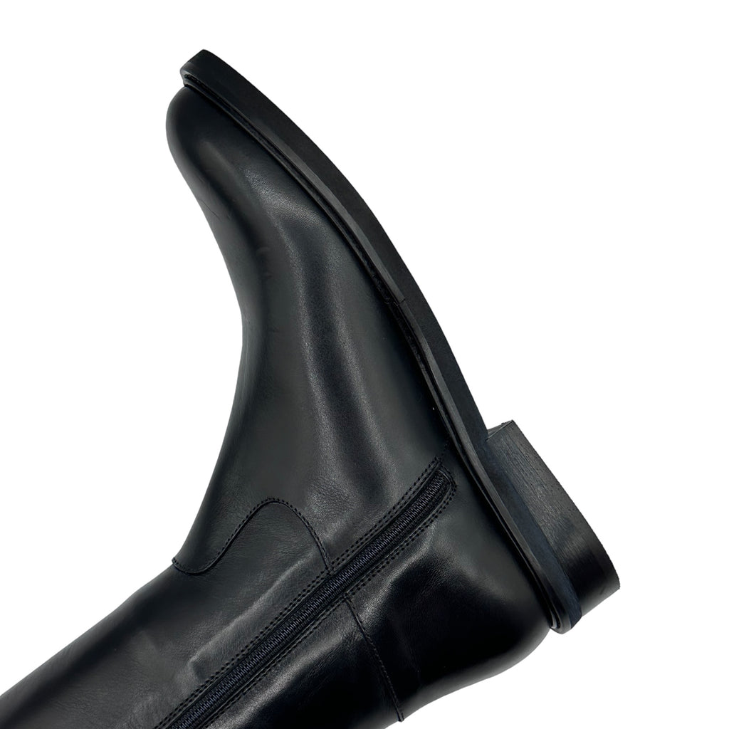 ALEXANDRA è il nostro modello di stivale alto con elastico a soffietto su entrambi i lati a livello del polpaccio, zip e para realizzato a mano in Italia. ALEXANDRA ha la tomaia in pelle longbeach, priva di dettagli e che evidenzia l'elevata qualità della pelle utilizzata. Longbeach è una pelle in pura anilina con superficie in nabuk, conciata con oli e cere per esaltarne la nappa naturale. Ha una grana naturale, mano morbida e superficie cerosa. La sua superficie leggermente garzata è ottenuta con una speciale lavorazione che conferisce a Longbeach un aspetto ricco e pregiato. La punta arrotondata e la suola interamente in gomma antiscivolo rendono comoda la camminata e l'utilizzo, la linguetta in pelle agevola la calzata. La fodera interna è in nappa come la soletta. La suola è realizzata in EXTRALIGHT® un materiale plastico ultraleggero, espanso e reticolato a celle chiuse, risultato di un esclusivo processo produttivo brevettato in Italia e nel mondo che parte dalla formulazione del materiale fino alla fase di stampaggio. Ottenuto da un granulo a base di poliolefine, ha un peso circa 3 volte inferiore a quello di altri con le stesse proprietà meccaniche. La sua caratteristica essenziale è di associare alla bassa densità ed alle ottime proprietà fisico-meccaniche una particolare tattilità “soft touch”. Il tacco è di circa 4 centimetri.